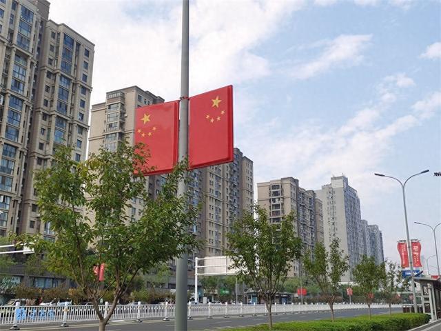 市区洪泽湖路、南湖路、八一西路等街道,也纷纷“披”上了节日的盛装,商铺门前、居民楼外,五星红旗如繁星点点,将城市的天空点缀得既庄重又温馨。