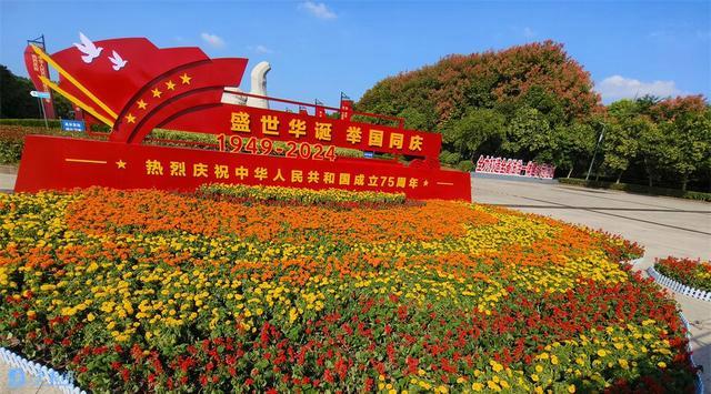喜迎国庆的鲜明主题、磅礴大气的造型花坛、光彩夺目的五星红旗……国庆节即将来临,各种鲜花造景扮靓城市街景,四处皆是喜庆的“中国红”。“中国红”成了宿迁主色调。9月29日,笔者走访宿迁各处,感受日渐浓厚的节日氛围。