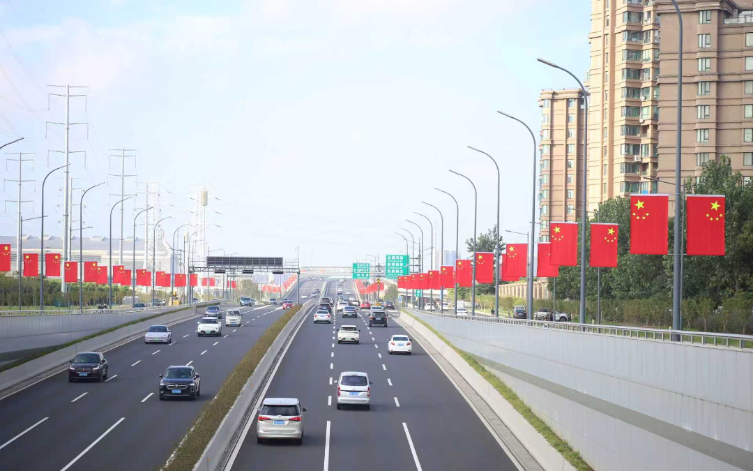 惠山区在政和大道、惠洲大道、惠山大道等67条重点道路悬挂国旗。国旗装扮连片开发园区与宜居新城,产业活力与节日喜庆相互融合,绘就现代化城区图景。