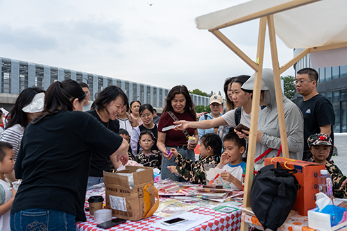 市集创新构建双创生态,小摊位释放发展大动能。本次“长营热闹集”突破传统游园模式,巧妙融入创业服务功能。在“长营优选”商户区,“国风手工”主理人小薇等创业青年通过社区“创业助力计划”获得免费展销平台,现场教授居民制作中秋主题扭扭棒、非遗漆扇等。社区还联合即将开业的玲珑里商业综合体,邀请入驻商户开展现场推介和宣传,让市集成为了创业项目的“试炼场”。现场多位创业者打通了沟通渠道,实现了品牌推广与客户资源精准对接,彰显出社区打造创业服务新生态的显著成效。