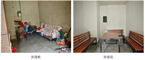 为改善这一问题,梅巷社区对接小区物业,积极听取群众意见,共同策划“以旧换新”行动。由物业对13幢架空层进行精心改造,并购置一批崭新公共座椅,替换原居民自发摆放的废旧椅子,将原本闲置、杂乱的空间打造成“共享客厅”。改造完成后,居民在此避暑纳凉、休闲娱乐更加舒适宜人。