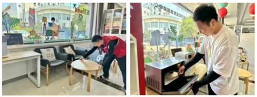 社区收到反馈后,积极协调商户资源,因地制宜打造暖“新”驿站,在公共区域角落增设饮水机、微波炉、手机充电插排和休闲桌椅,为小哥提供歇脚、喝水、充电等基础服务。同时,社区定期邀请医生驻点,提供免费测血糖、量血压等基础体检,联合律所开展“法律微咨询”,解答劳动纠纷、处理交通意外等常见问题,积极为“两新”群体提供贴心服务。