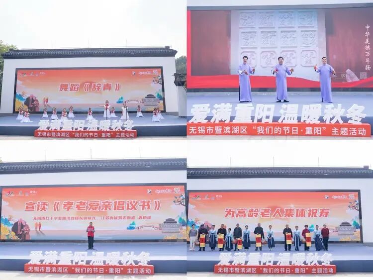 活动在充满传统意蕴的重阳舞蹈《辞青》中拉开帷幕。现场通过一系列文艺表演、典型宣传、孝亲倡议、集体祝寿等形式,生动展现无锡市弘扬尊老敬老传统、推进现代养老服务的丰硕成果。