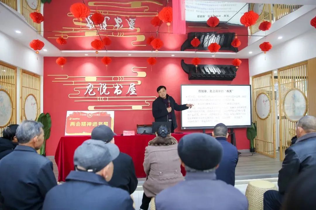 全国优秀党务工作者、全国基层理论宣讲先进个人姚呈明走进长江镇镇龙社区新时代文明实践站,向党员群众解读全国两会政府工作报告。