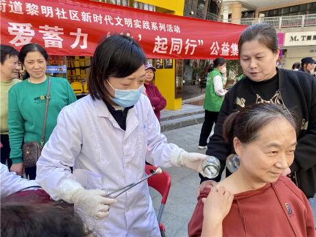 海安市海安街道新时代文明实践所联合黎明社区新时代文明实践站在恒天新世界广场举办“为爱蓄力 ‘益’起同行”文明集市活动。