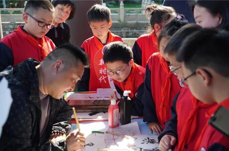 南通崇川区新时代文明实践中心在濠河五亭开展书法绘画的互动表演,让人们感受传统文化的和谐韵律之美。