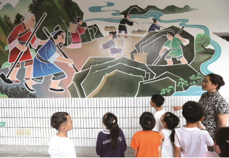 这4幅墙绘作品位于教学楼一楼、二楼、三楼,其中《愚公移山》《精卫填海》《后羿射日》3幅作品还原传统神话经典场景,将坚持不懈、无畏抗争的中华优秀传统文化精神融入校园环境;另一幅航空航天主题作品传递出探索未知、追逐科技梦想的正能量。