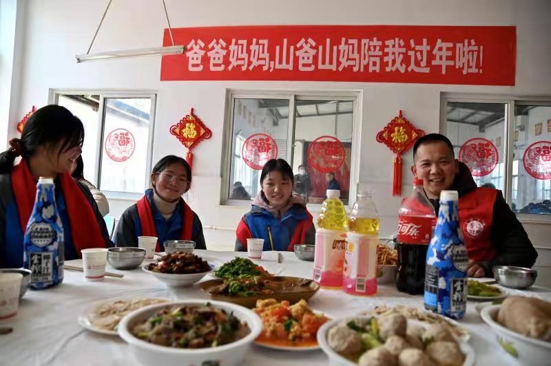 仇集中学地处苏皖交界山区,留守儿童较多,家庭教育的缺位和亲情的缺失,使这些留守娃常常在学业成绩、沟通交往、心理健康等方面出现不同程度的问题。针对这一现状,2016年,仇集中学推行“山爸山妈”关爱留守山娃“1+2=1”项目模式,即以学校为媒介,为每1名留守“山娃”通过“相亲”的方式配对1名志愿者“山爸”和1名志愿者“山妈”,组建1个“爱心家庭”,开展结对帮扶活动,让留守儿童得到“爸妈的呵护”,享受“家的温暖”。“山爸山妈”们常态化开展亲情呵护“五个一”活动,即每天一次看望问候、每周一次沟通交流、每月一次家庭聚餐、每学期一次亲子活动、每学年一次节日陪伴,并针对留守儿童学习、生活、心理上存在的问题,正确、适时、全面地进行引导,做留守儿童生活的知情人、学习的引路人、品德的教育人、成长的保护人。