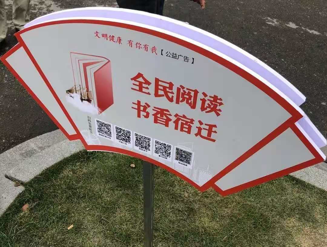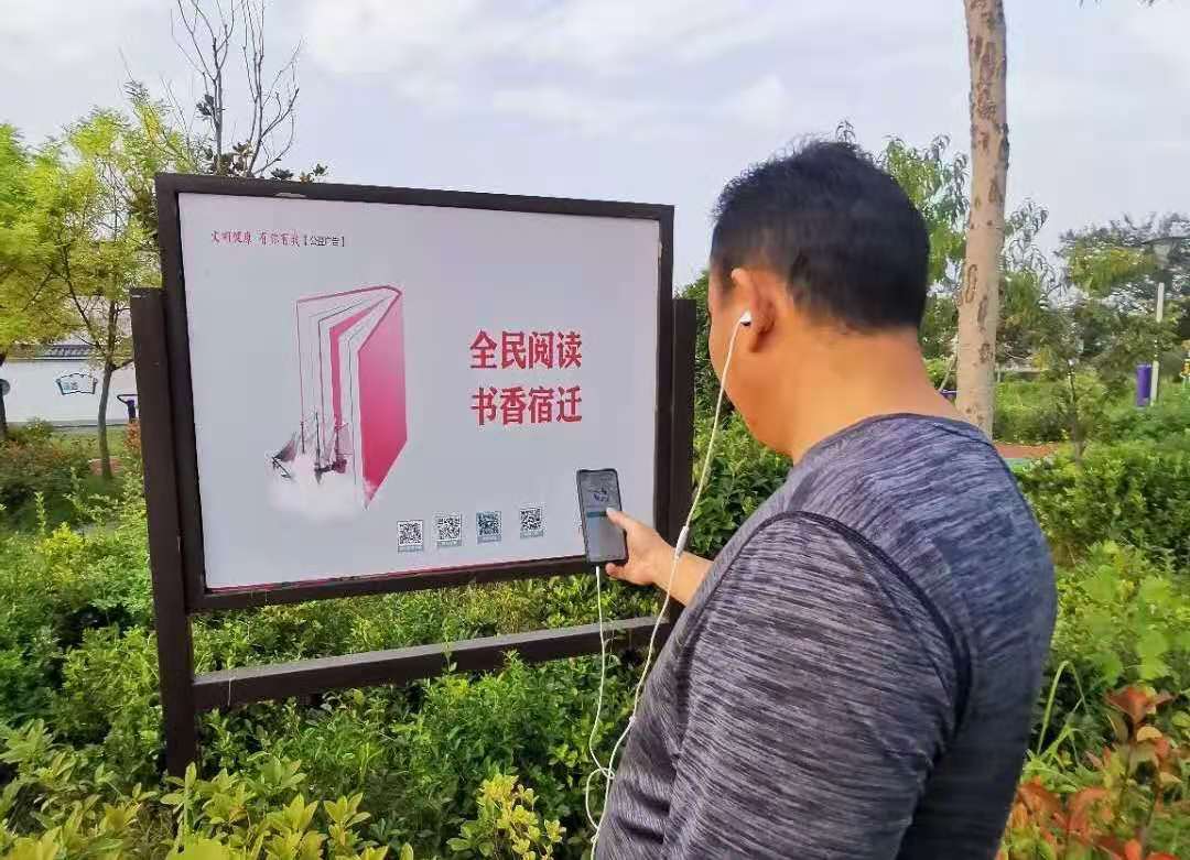 在耿车镇竹林风家具厂门口竖立着这样一个宣传展板,上面展示着书香江苏、宿城区图书馆、咪咕阅读、喜马拉雅等二维码,“码”上阅读吸引了大批喜欢阅读的工人热情参与。
