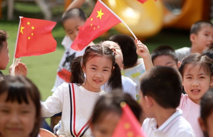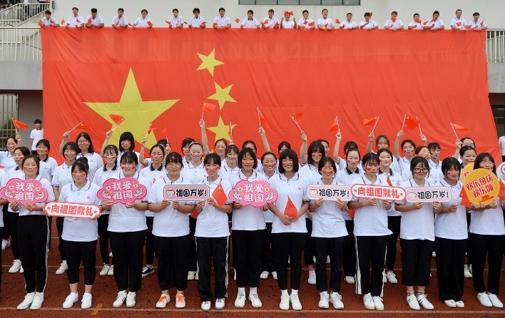 歌唱祖国,校园成红色海洋